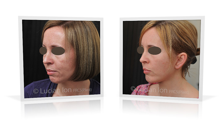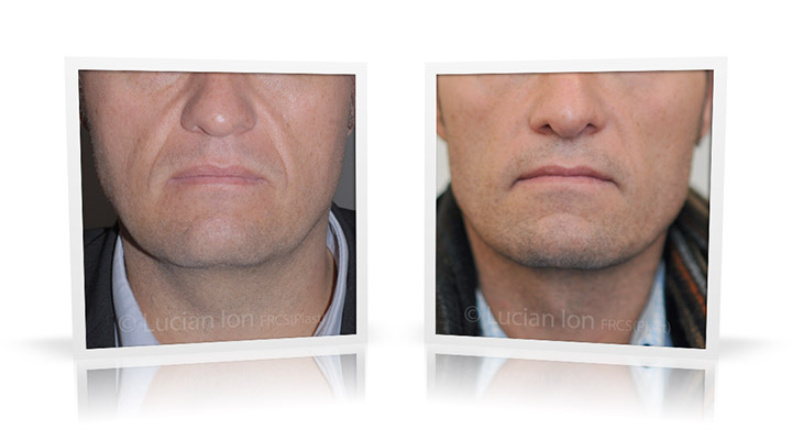 ![]() ![]() | Anterior necklift through scar under the chin only and liposuction to jawline. | 45 |